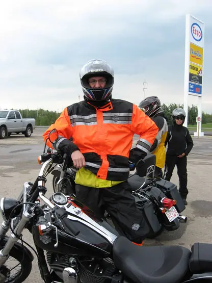 While on the trip I wore my new Harley-Davidson Men’s Hi-Vis Rain Suit most of the time. It protected me against not only the rain but the cold air temperature of the mountains as well (even in July). I found that the suit fits easily over normal motorcycle gear thanks to it’s size and zipper/velcro jacket and pant leg design.