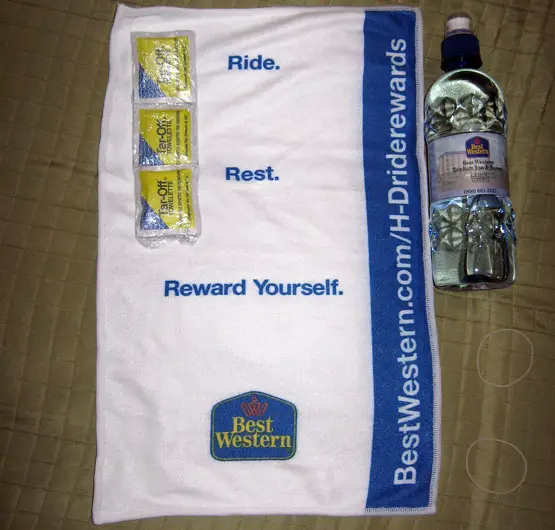 We all were on Best Western’s Ride Reward program (called BW Rider), which is a newer program to cater to motorcyclists around North America. The hotel chain offers 1300+ “rider friendly” hotels and proides free rider-specific hotel services (such as wipe-down towels at check in and access to a wash station at no additional cost). In addition, some properties offer designated parking, tar remover, sunscreen and lip balm. BW Rider also gives Gold Elite status, which includes 10 percent bonus points on every Best Western stay and the ability to purchase points for award redemption, along with other signature benefits. We all joked about the “Pleasently Sented Tar Remover” wipes (Kerosene infused towel), but they are a nice addition to the package. Truthfully, it’s nice to be welcomed as a rider because it wasn’t that long ago that hotels turned their noses up at riders, groups of riders and even specifically Harley-Davidson riders.