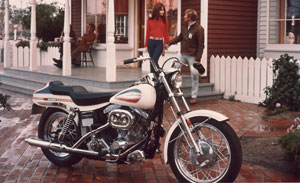 In 1977 Harley-Davidson introduced the FXS Low Rider to the public in Daytona Beach. With drag style handlebars, unique engine and paint treatments, the Low Rider lived up to its name by placing the rider in a lowered seating position. Later in the same year, Willie G. Davidson’s dynamic version of the Sportster, the Cafe Racer, was released. 1979 brought about the introduction of the FXEF Fat Bob, “Fat” because of the dual gas tanks, “Bob” for the bobbed fenders.