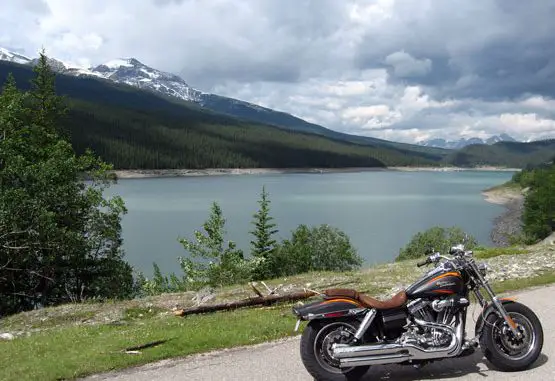 After visiting Maligne Lake it was time to hit the highway and get some mileage under the tires. The new 2010 CVO Fat Bob is Harley-Davidson’s attempt to optimize the Fat Bob. Custom paint, custom parts and a powerful 110 cubic inch engine with Screamin’ Eagle power, what more could you ask for?