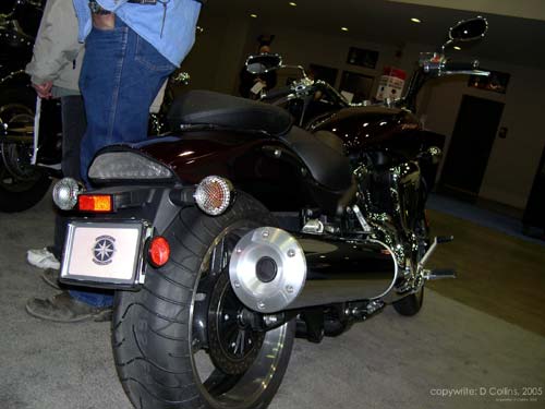 Yamaha had a nice display. They had a few racing displays, one of which I caught on film. I also glanced at the R1’s and R6’s. I love these bikes, but I know they have really been discussed to death, so a few photos is all I’ll give you on that one. Also a quick photo of that beautiful exhaust on the Warrior.