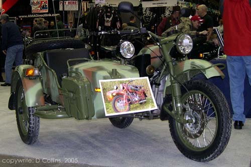 What bike show would be complete without a stop to see the Urals? They had both models. One of them becomes two-wheeled drive with the sidecar attached. The two rear wheels will push you through the snow! Also these bikes have reverse gearing.