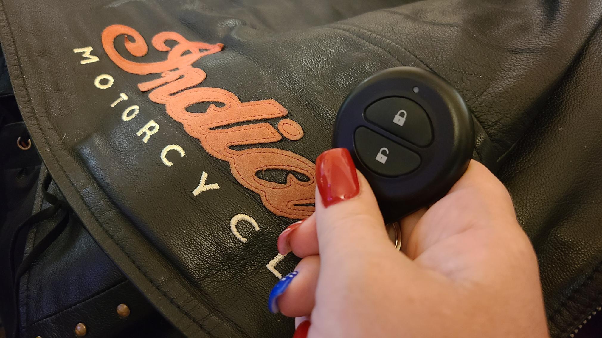 The fob used to lock and unlock the ‘Slammed Bags’ is also a start up transmitter. As long as I have it on my person no keys are required. I have to tell you that is really a gift, courtesy of Indian. Every rider struggles with putting gloves on, then remembering they have to dig in a pocket to retrieve the key. Depending on the tightness of your jeans, jacket zippers, or where your purse is, keyless riding is a wonderful thing! Indian does throw in a set of keys as well, and one is required to lock the forks for extra security when parking.