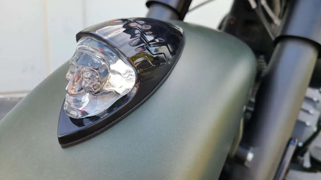 Indian generously outfitted our Springfield with several upgrades. It had the 16″ handlebars, driving lights, and Stage I intake and exhaust kits.