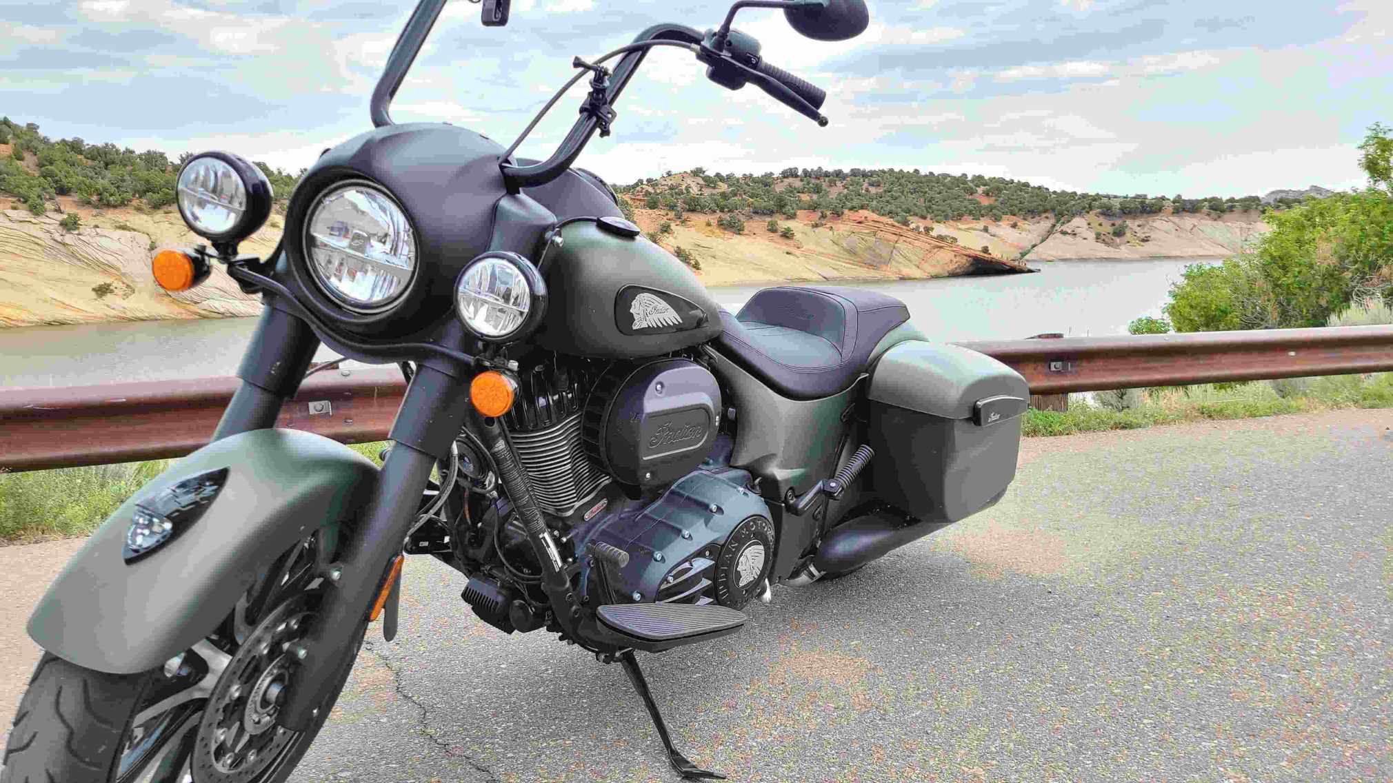 It’s still Indian Summer here at Total Motorcycle and we’re loving it! What you really wanna do on a big touring bike like the Indian Springfield Dark Horse is of course, tour. We wasted no time at all getting our review bike out for some extended road tripping. Read on to find out how the Dark Horse handled that first incredible 2000 mile week with TMW reviewers Eric and Carrie!
