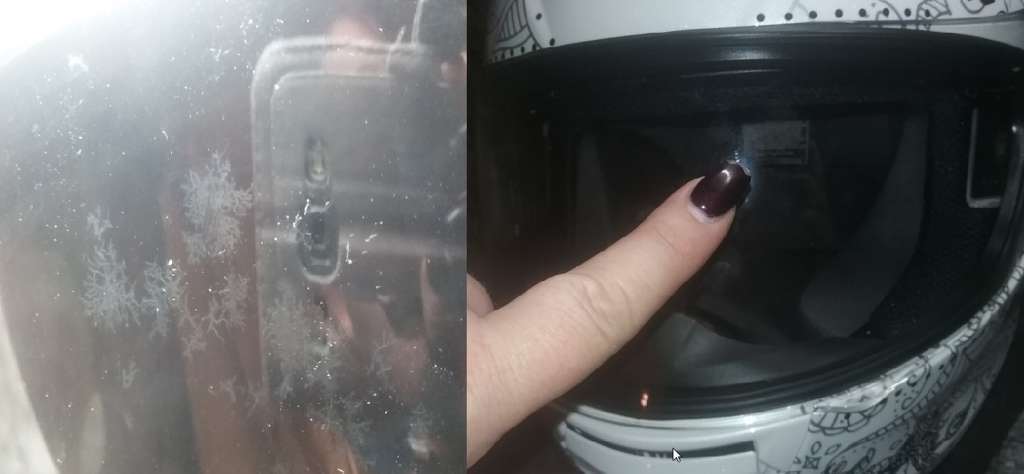 Perhaps it was stored in as warehouse in extreme cold weather? Maybe the visor wasn’t left to set up in proper temperatures after fabrication? I don’t know. In my opinion, the opportunity to have clear unobstructed vision through a shiny new visor is worth it’s weight in gold. It was a shame indeed to unbox a new helmet at the price point of $239.95 and immediately discover a possible defect. At first I was not able to remove the snowflake, it didn’t appear to be imbedded inside the visor material but it was really frozen on there. I was hesitant do give it a good scrubbing for fear of ruining a brand new visor. Luckily, the snowflakes weren’t positioned as such to impair my line of sight and I rode with it. Just last night I sat down with a microfiber cloth and some hot water and repeatedly massaged the blemish and was able to remove it.