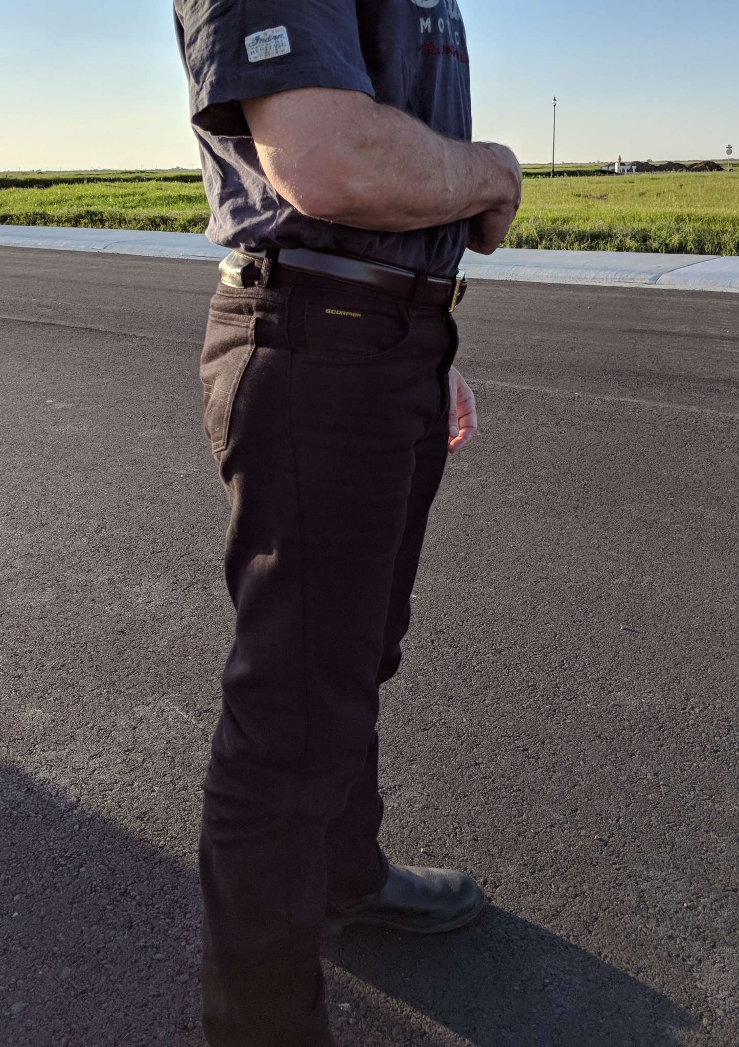 For the past several years I have had and use regularly Kevlar Riding Jeans on my long or highway rides. Scorpion’s Covert riding jeans are in both better and slightly worse then what I currently use (Sliders Kevlar Jeans). Better as they are more stylish, less baggy and more refined. Slight worse as they offer 250 GSM DuPont™ Kevlar vs 300 GSM DuPont™ Kevlar in my Sliders. It really is a toss up. Experts say 300 GSM is what you should be aiming for, but 250 is so close that does it really matter? The more GSM Kevlar and higher oz of denim makes material less flexible and more rigid, so it is up to an riders individual taste what feels/looks/performs best for them.