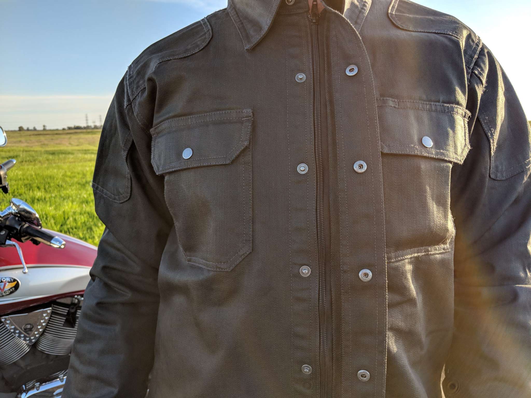 Lest you think this is just a shirt made of an old-fashioned material, think again. The built-in sleeves in the shoulders, back, and elbows let you add armor and turn this rugged looking garment into a pretty good alternative to the more traditional leather, mesh or combo jacket. It also includes a Kevlar lining so there’s some additional protection that isn’t immediately evident.