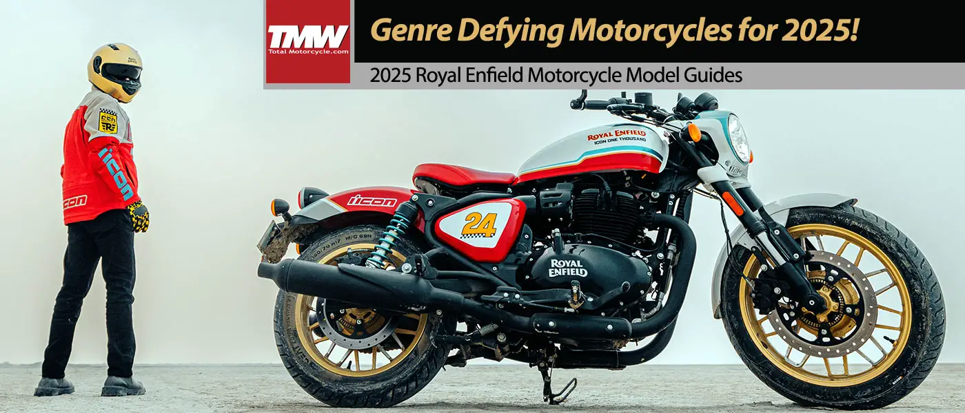 In India, Royal Enfield is the most loved and well known brands for riders, but if a North America rider thinks of Royal Enfield, they either never heard of them or image some 1950’s style motorbike. Royal Enfield wants to change that with all new genre defying motorcycles for their 2025 motorcycle model lineup! And honestly, they are impressive in not only design but also affordability. If you haven’t seen our Royal Enfield Motorcycle Model Review Guides in the past 10 years, you will be shocked how fast and far RE has come. No longer small 1950’s style 350cc bikes, we are talking about 650cc mid-sized cruisers, adventure bikes, retro bikes, standards, a cafe racer and even a revolutionary electric bike as well.