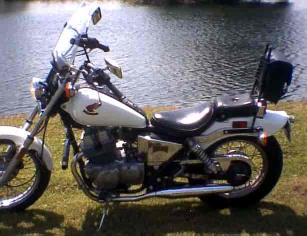 1985 Honda Rebel 250 cc – I’m 13 and go to Westover school I will be 14 Jan.27 of 2004 my Dad bought a Yahama V-max and since he bought his bike I wanted one so for me to start out on he bought me a Honda rebel.