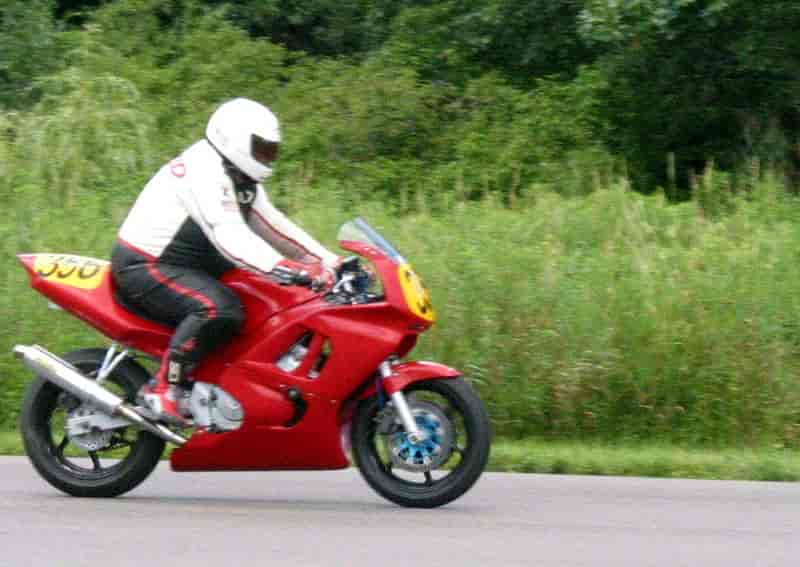 1995 Honda CBR600 F3 -NESBA Track day. I at about 130MPH just before the finish. It is so much fun to get a great drive out of the last turn and pass the odd 750, Buell, or even a liter bike or two. On the brakes I could get by just about anyone and I’m old and slow. TOP