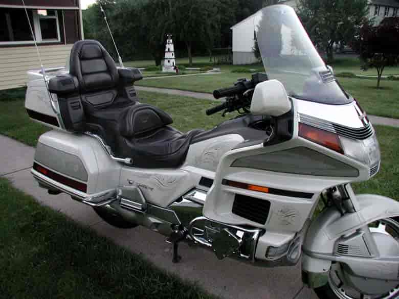 1990 Honda Goldwing 1500SE – 46k miles, creme white, bike is mint cond. cb/am-fm radio, backrest, color matched helmet w/intercom, trunk light kit, spoiler. Custom pinstriping. TOP