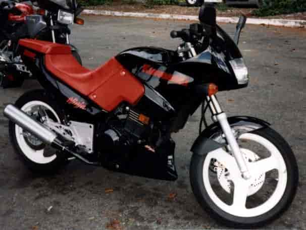 –63 bhp @ 6,500 rpm, 50 ft-lbs torque @ 6,000 rpm, 8.8:1 compression, Maximum speed as geared: 122 mph @ 7,500 rpm,Redline 7,000 rpm North American models (7,500 rpm redline Japan home market models), Net weight 463 lbs, Wet weight 515 lbs, 58″ wheelbase, Seat: 32″ height, Handlebar: 36″ width, 17/40 sprockets = 2.352:1 ratio (also 17/38 and 17/42 in some markets), single front disc (dual disc brakes in Europe), 3.7 US gal tank (5.0 US gal tank in Japan and Euro market)